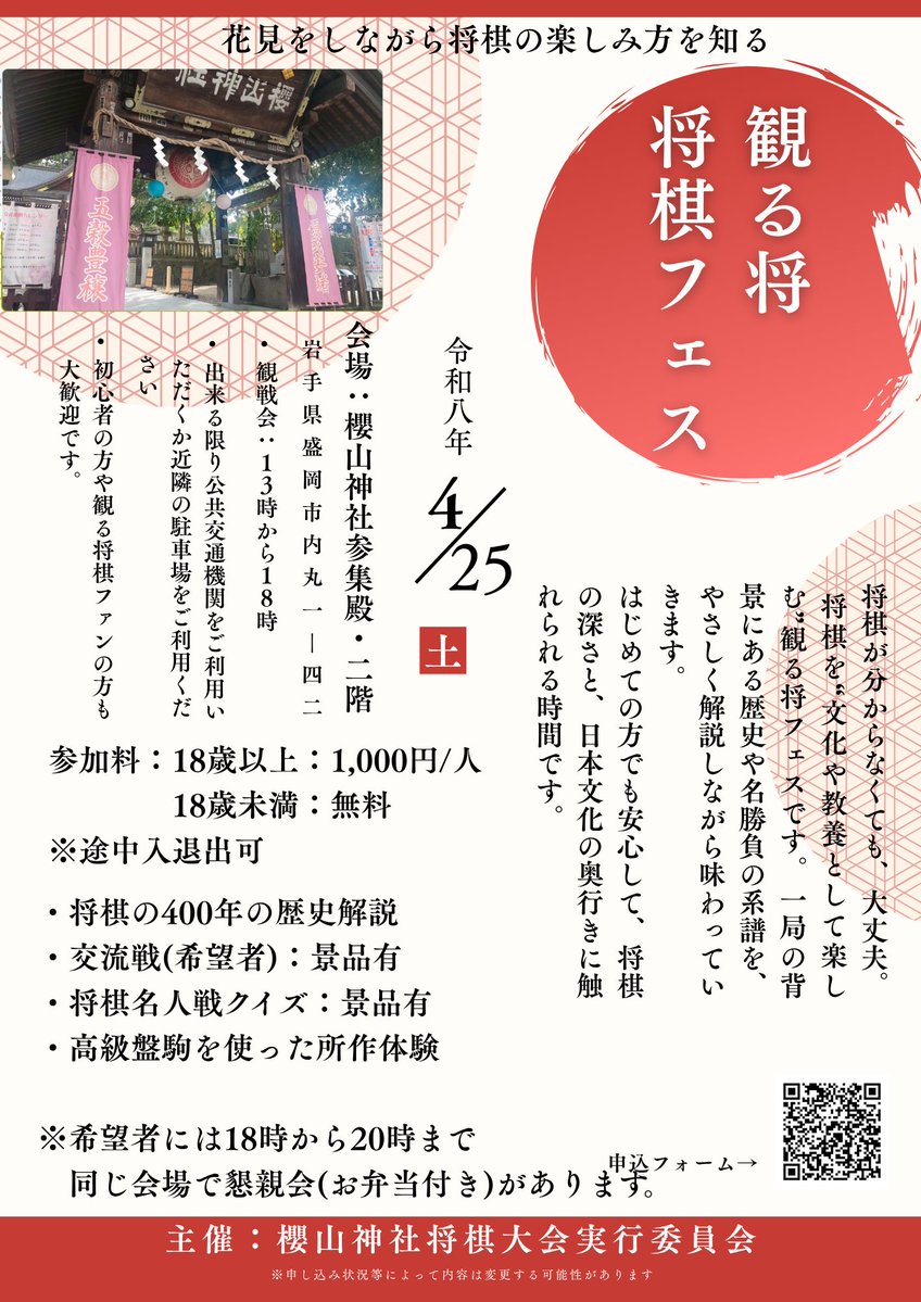 【4/25(土)櫻山神社将棋イベント】