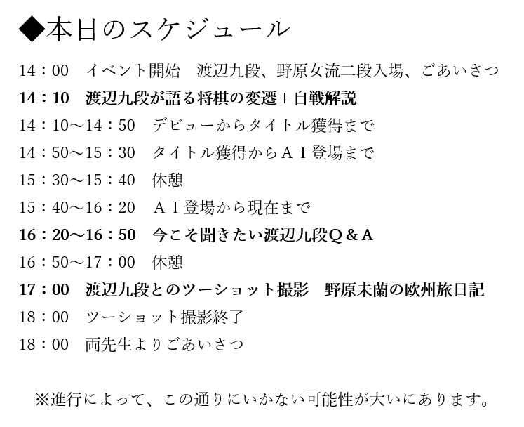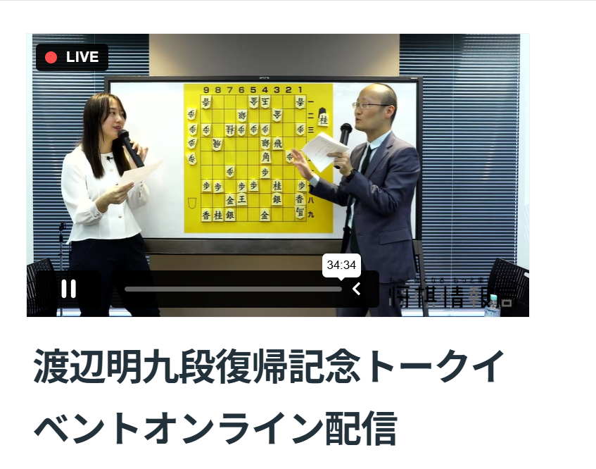 渡辺明九段復帰記念トークイベント 「私の将棋の歩み ~デビューから現在まで~」