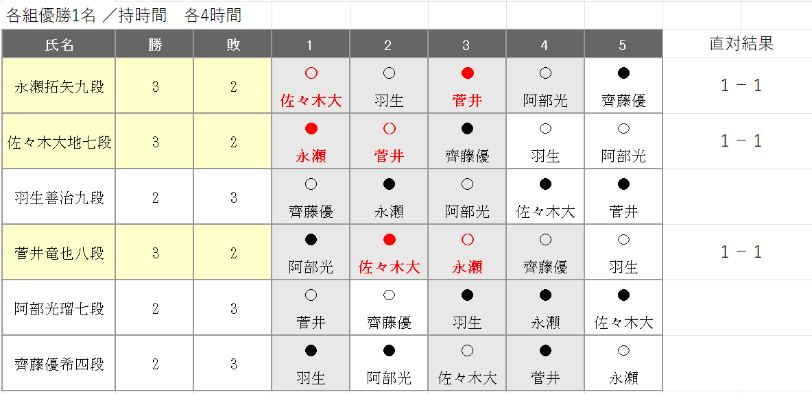 ・まず佐々木七段が4回戦羽生戦、5回戦阿部光戦に勝ちます。 -