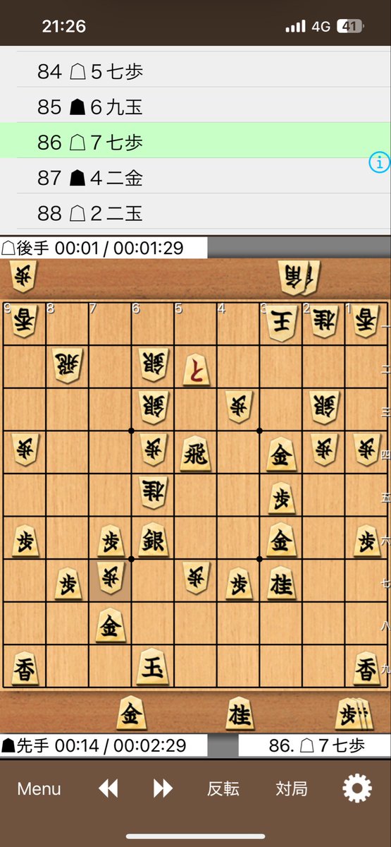 他の場所は5四銀が詰めろになり後手勝ちです。6九玉に今度5四銀は2三金で先手玉が不詰なので6九玉には7七歩(2図)と迫ります。一昨日の感想戦の検討で結論が出なかった