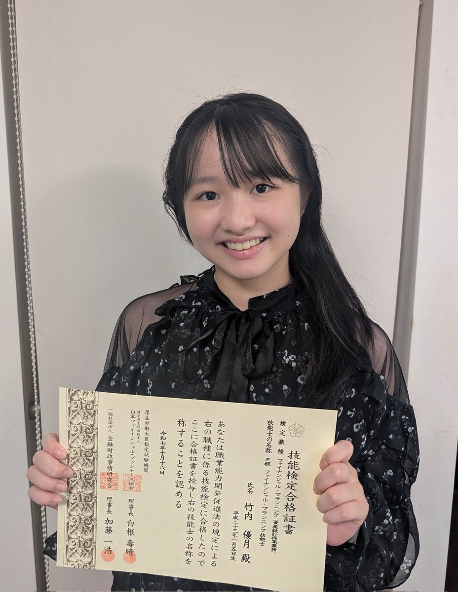 部活は入っていませんが去年の10月にFP3級を取得しました!今年は簿記3級取得を目標に頑張ります!(竹内) -