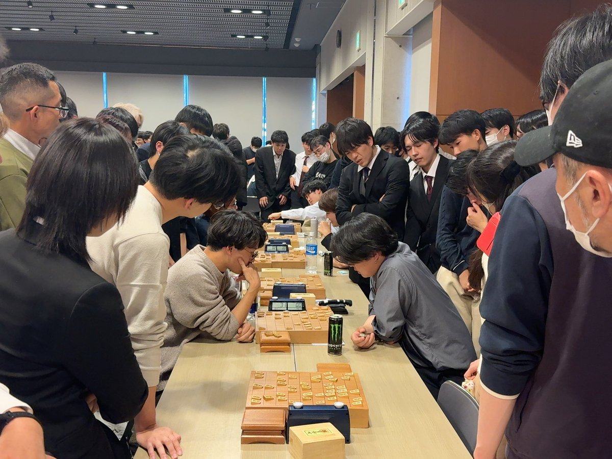 あつすぎる...村)学生将棋王座戦、立命館大ー慶應大戦は共に3勝を挙げて最後の一局が残りました。大勢が見守っています。 x.com/asahi_shogi/st…