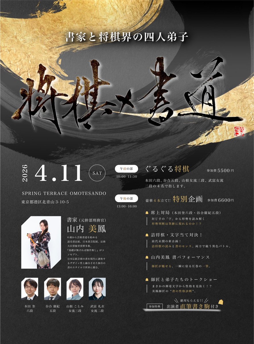 4月18日(土)、棋の音道場でイベントに出演します。お越しいただけたら嬉しいです☺️